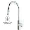 The Voda Gooseneck Pull Out Sink Mixers have been updated and now feature a Dual-function handpiece with a swivel connection. The pullout hose fitting and underbench fittings have also been redesigned with a fast-fit hose connection and improved bench clamp to speed up installation. It is constructed from lead-free 304 Stainless Steel and features a pull out hand piece with Cold Start Technology.
